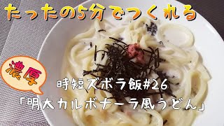 【時短ズボラ料理Vlog#26】5分で作れる!明太カルボナーラ風うどん【料理音ASMR】