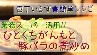 包丁いらず★超簡単レシピ|ひとくちがんもと豚バラの煮炒め〜業務スーパー冷凍食品活用レシピ〜