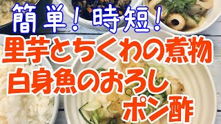 【簡単!時短!】白身魚のおろしポン酢と里芋とちくわの煮物