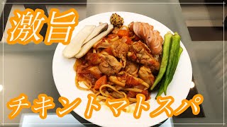 単身駐在員のトマトチキンスパゲッティー 平民の節約料理 今回は時短で手抜き つまみも一緒につくっちゃうかも