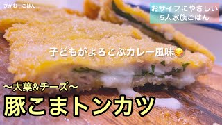 【節約豚こまトンカツ】カレー風味で子どもも喜ぶ/大葉とチーズで大人もうれしい/料理動画/おサイフにやさしい5人家族ごはん/ぴかむーごはんNO.27